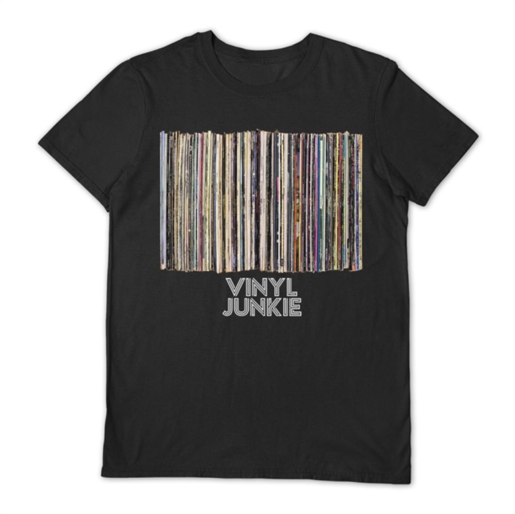 Vinyl Junkie t-shirt i sort og 100% bomuld