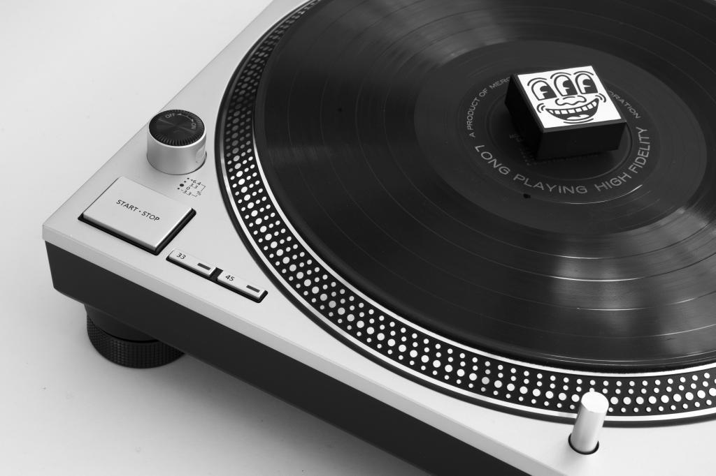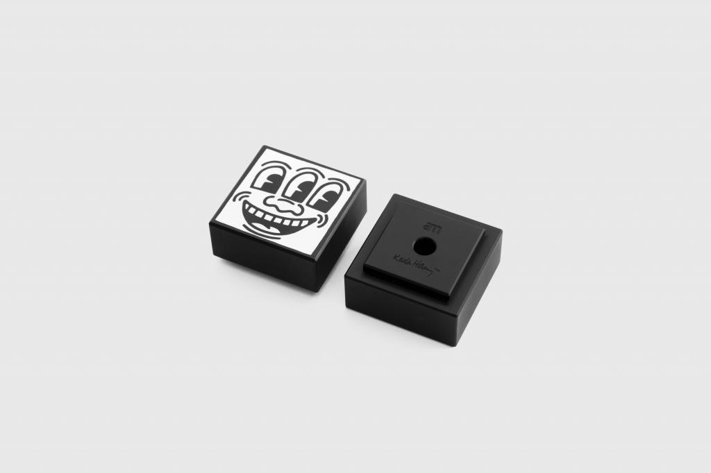 Men denne vægt minimerer du vibrationerne, der er forårsaget af nålens bevægelse i pladerillen, da disse vibrationer bedre kan forsvinde grundet en tilstrammet kontakt imellem pladen og måtten derunder. Nu har den fået en opdatering, i denne særlige kollektion, som er udsmykket af den legendariske gadekunstners Keith Harings værker. Vægten er desuden firkantet fremfor standard vægten som er rund. Der er 5 produkter i serien, og de bliver alle kun solgt i et begrænset oplag.