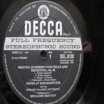 Vinylen, 'Cello Symphony Op. 68 / Cello Concerto In C', af Benjamin Britten, udkom i år 1964.