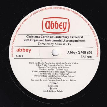 Vinylen, 'Christmas Carols At Canterbury Cathedral', af Canterbury Cathedral Choir, udkom i år 1970.