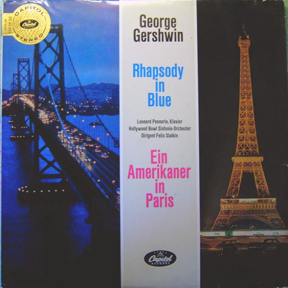 Vinylen, 'Gershwin In Paris - Rhapsody In Blue, An American In Paris', af George Gershwin, The Hollywood Bowl Symphony Orchestra, Felix Slatkin, Leonard Pennario, udkom i år 1959.
