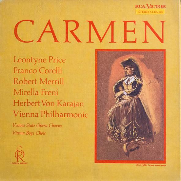 Vinylen, 'Carmen', af Georges Bizet, Leontyne Price, Franco Corelli, Robert Merrill, Mirella Freni, Herbert Von Karajan, Wiener Philharmoniker, Die Wiener Sängerknaben, udkom i år 1964.