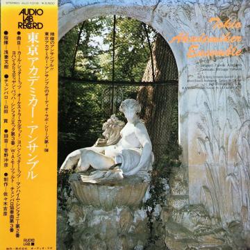 Vinylen, 'Orchester-Quartett F Dur, Mannheimer Sinfonie Nr.2 A Dur, Sinfonietta Nr.3 C Dur, Cembalo Konzert Nr.3 Es Dur KV.107-3', af Tokio Akademiker Ensemble, udkom i år 1974.